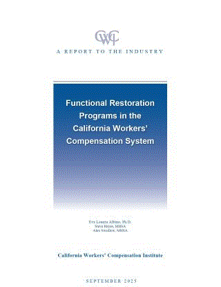 Functional Restoration Programs in California Workers’ Compensation (Report to the Industry, September 2025)$21.00 Excluding Tax